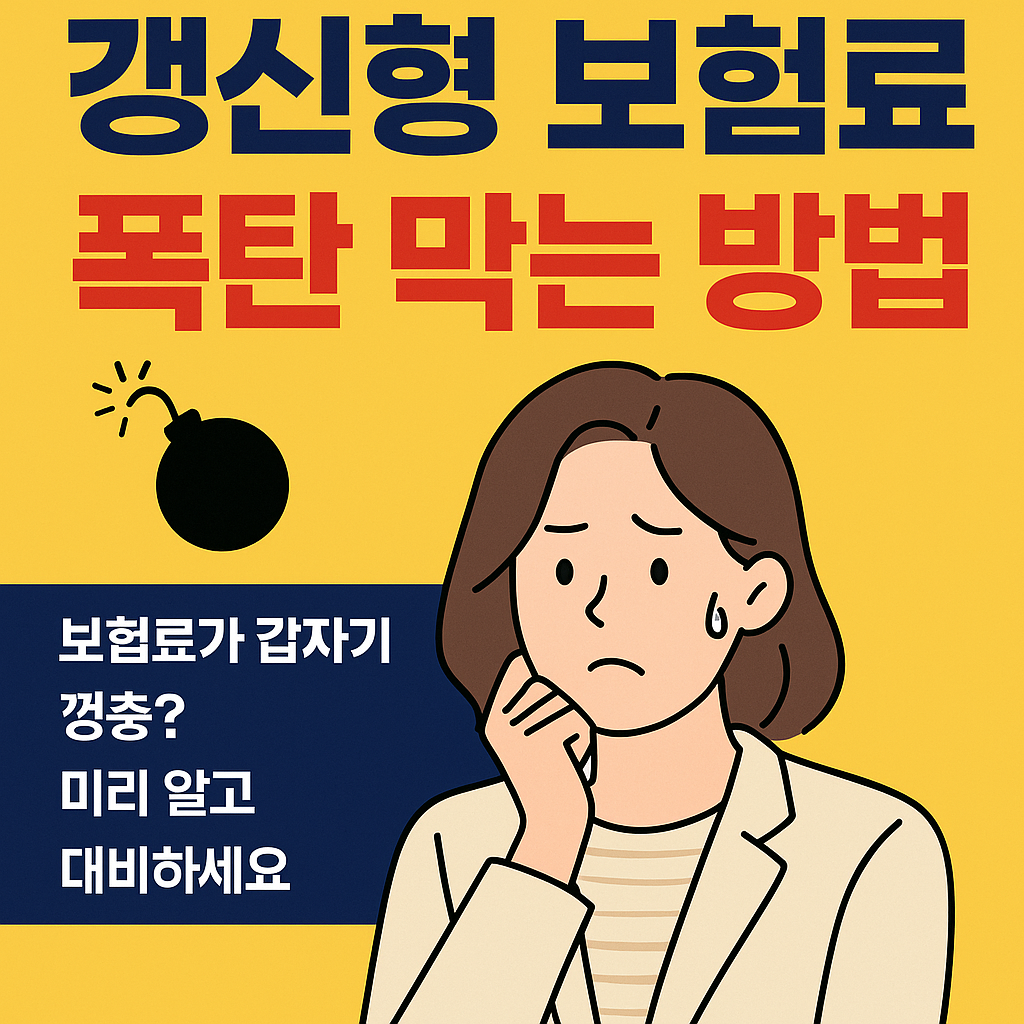 💣 갱신형 보험료 폭탄, 나도 모르게 다가오는 금융 리스크지금 점검하지 않으면 몇 년 뒤 '보험료 쇼크'가 올 수 있습니다!🙋🏻♀️ 보험료가 갑자기 확 오르셨나요?"처음엔 월 3만원이었는데, 갱신되면서 8만원으로 올랐어요.""60세가 되면 보험료가 20만원이 넘는다고 하더라고요. 이대로 괜찮을까요?"이런 문의를 정말 많이 받습니다.특히 30~40대에 갱신형 보험을 가입한 분들이갱신 주기가 다가오면서 보험료 부담이 눈덩이처럼 커지는 상황을 겪고 계십니다.혹시라도 지금 이 글을 보고 계신다면,이 질문부터 스스로에게 해보세요.❓ 내가 가입한 보험은 갱신형인가요, 비갱신형인가요?🔍 갱신형 보험이란?갱신형 보험은 일정한 주기(3년, 5년, 10년 등)마다보험료가 ‘현재 나이와 손해율’을 기준으로 다시 계..